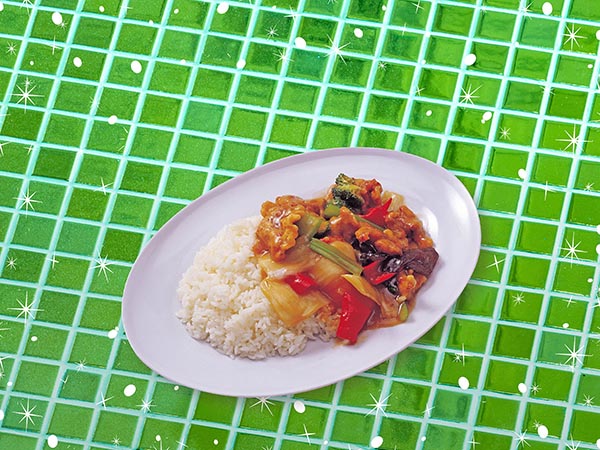 Stirfried Pork in Szechuan Peppercorn Sauce Rice Topped