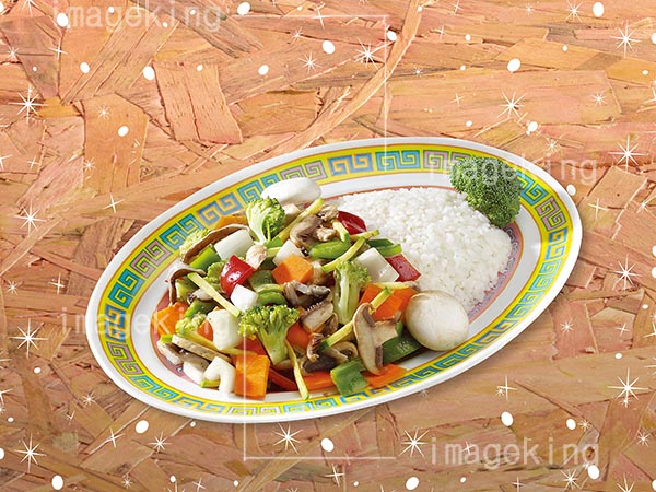 Stirfried Button Mushroom on Topped Rice